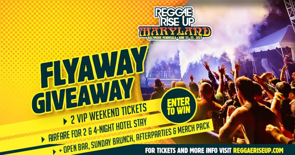 Reggae music lovers can go soak up all the fun at the 2023 Reggae Rise Up Maryland 2023 VIP Flyaway Sweepstakes! If you are one of them, there is a big chance to earn a free VIP Flyaway Package For 2 to the event!