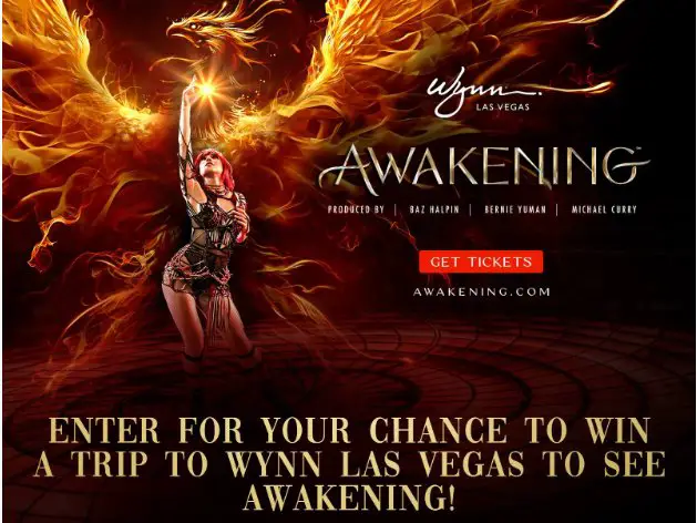 One lucky winner will be selected by the sponsor. The winner will receive two Emerald Level tickets to see Awakening, $400 Salon Credit, two-night stay in a Wynn Las Vegas or Encore Las Vegas Resort Room, and roundtrip coach airfare for two up to $1,500.