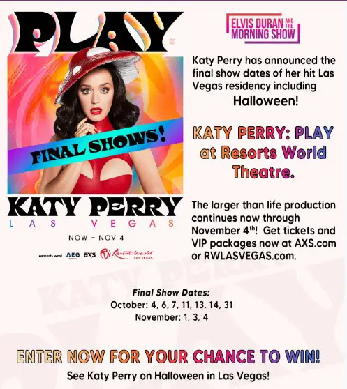 Elvis Duran And The Morning Show’s Katy Perry Flyaway Sweepstakes – Win A Trip For 2 To The Katy Perry PLAY Concert In Las Vegas - Elvis Duran and the Morning Show