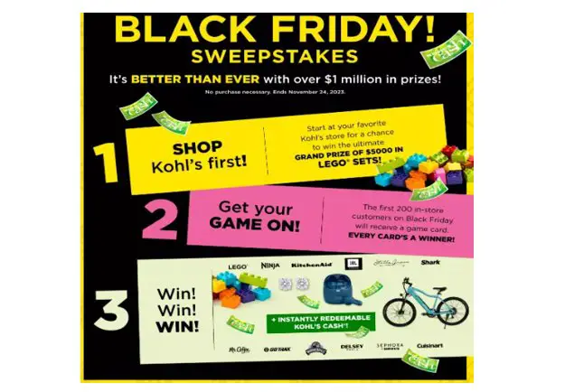 The Kohl’s YAY For Black Friday Sweepstakes runs through November 24th and is open to the legal residents of the 50 United States who are at least 18 years of age at the time of entry.