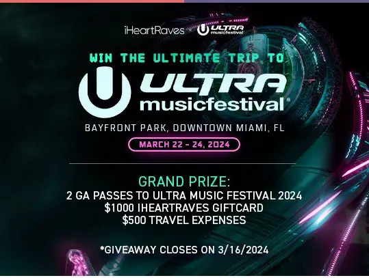 The iHeartRaves Ultra Music Festival 2024 Sweepstakes runs through March 16th and is open to the legal residents of the United States and DC, who are at least 18 years of age at the time of entry.