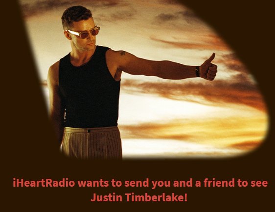 Check out the latest sweepstakes from iHeartRadio for a chance to win a trip for two to watch Justin Timberlake live!