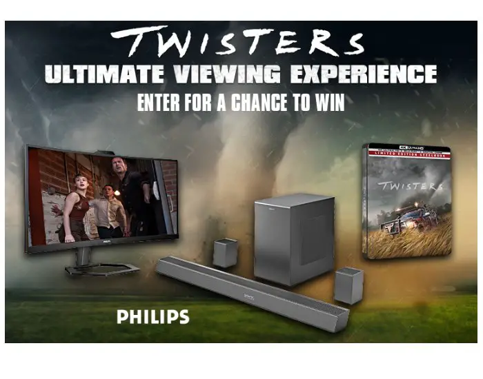 Enter now for a chance to win a 34" monitor with Phillips soundbar and a Twisters Steel Book! Enjoy the movie in its best quality possible with additional movie features in this amazing giveaway!
