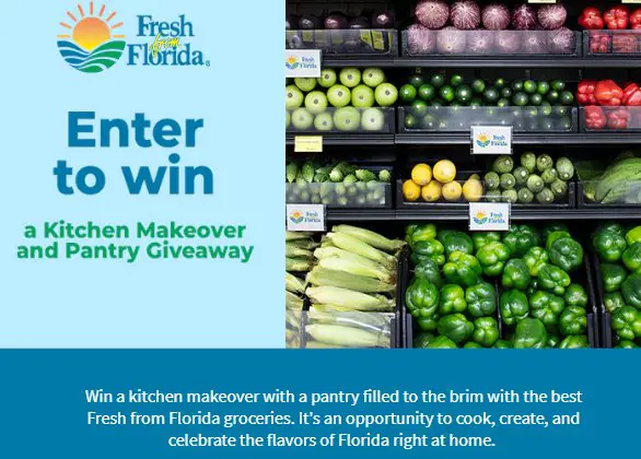 One lucky winner will be rewarded with a $10,000 pantry and kitchen makeover that includes a $5,000 Gift Card to stock their pantry with Fresh from Florida produce. The winner will also get a $5,000 Gift Card to update their kitchen.