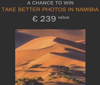 Enter to win a 10 module video course on taking awesome nature photos in Namibia/Africa worth $278.00. You can greatly increase your chance of winning by referring and sharing (get 7 points for each share!!!) to your photography friends!