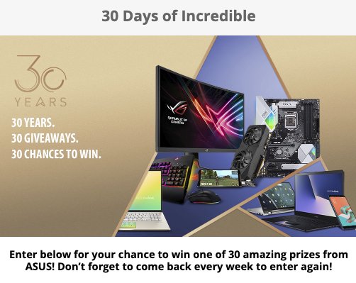 Enter to win a ASUS ZenBook Pro 15 worth $2,299.00 or 1 of 29 additional prizes. Don’t forget to go back every week to enter again!