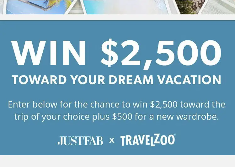 Enter to win $2,500.00 cash toward your next vacation from TravelZoo and a $500.00 credit to Just Fab. Odds of winning depend on the number of eligible entries received.