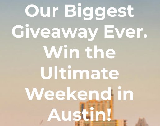 Win a $5,000.00 Trip to the Austin City Limits music festival October 11-13, 2019 from Camille Styles. Includes airfare, hotel stay, festival tickets, a shopping spree at By George, and more.