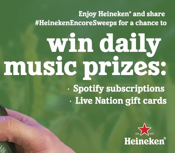 169 will win a $100.00 Live Nation gift card from Heineken. Just share a photo to enter today.