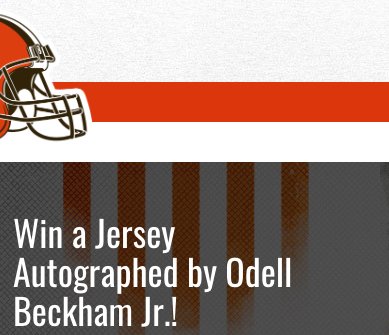 Enter to win a Cleveland Browns jersey signed by Odell Beckham Jr. Register to enter for a chance win! Share this sweepstake via your social networks to increase your chance of winning by getting extra entries!