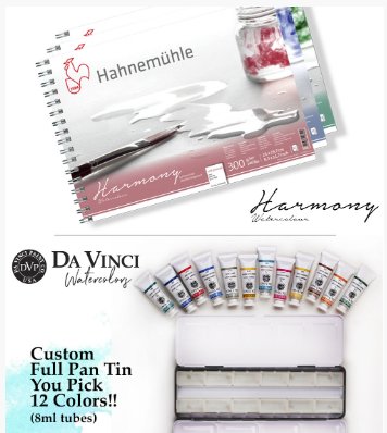 Winner will receive a Hahnemühle Harmony Watercolor Spiral bound pads and Da Vinci Paint Co. professional watercolors with travel palette. Sign up for newsletter to enter.
