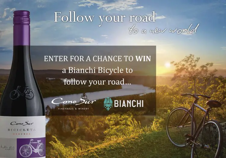 Enter to win a Bianchi Bicycle worth $2,000.00 from Cono Sur. Follow your road and submit your entry today.