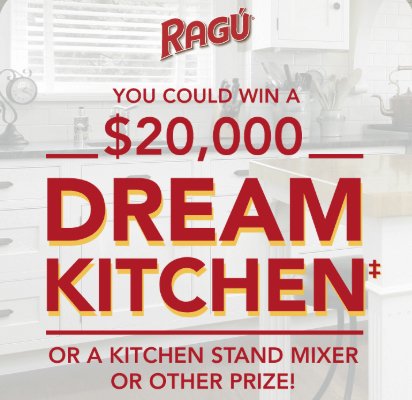Text RAGU to the short code 24587 for a chance to win a $20,000.00 kitchen makeover. Enter for a chance to win your dream kitchen!