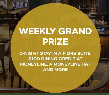 6 will win 2 nights in a Fiore Suite for 2 in Borgata Hotel Casino and Spa in Atlantic City NJ, $100.00 Food and Beverage Credit, Pop Socket and Hat. Click PLAY NOW to enter for a chance to win an amazing experience!