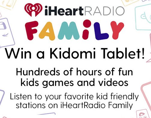 Enter to win 1 of 10 Kidomi tablets. Login with your iHeartRadio account. Submit your entry to qualify.