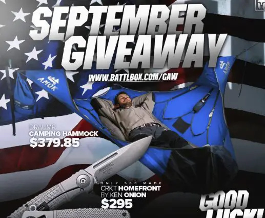 Prize: A CRKT 25th Anniversary Limited Edition Knife and Camping Hammock. Sign up for newsletter to enter. 8 ways to enter and win!