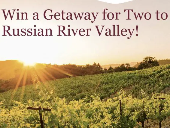 Score a trip for two to the Russian River Valley area of Sonoma, California, worth $4,995.00. Includes an airfare voucher, two nights accommodations, a 2-day tasting itinerary and more.
