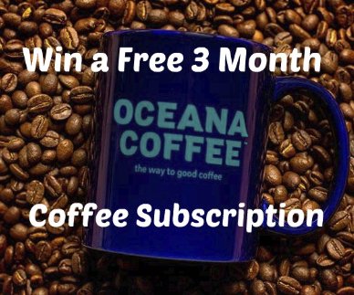 Win a 3-month Oceana Coffee subscription! The sponsor will send you a variation of coffee for you to try so you can find your favorite.