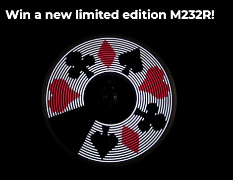 Win 1 of 4 prizes of Monkey Lights bike wheel lights, worth up to $140.00. This light comes with the Four Suits pattern as well as 41 of the other patterns that normally come with an M232R.