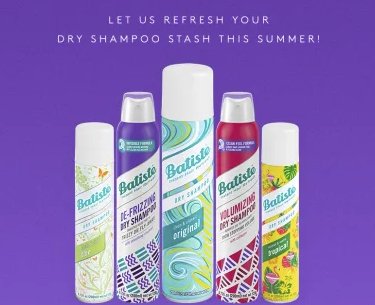 Case of Batiste dry shampoo and a Hair Care Prize Box from Refinery29. Complete the simple form to enter on the site.