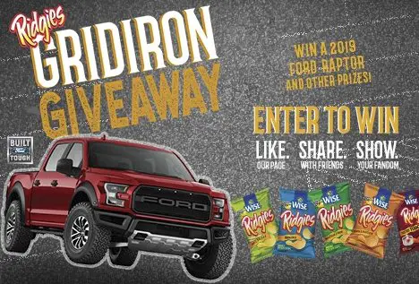 Win a $50,000.00 2019 Ford Raptor from Wise Foods! Share the post and comment on this post by telling us what do you like most about tailgating. Be sure to include #WiseSnacksSweepstakes. It’s that easy!