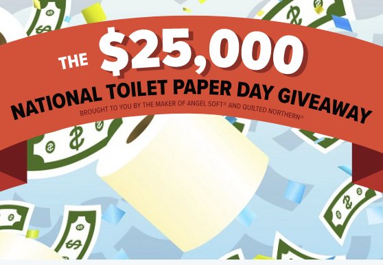 Georgia Pacific is celebrating Toilet Paper Day by giving one lucky winner $25,000.00! Celebrate toilet paper with us by taking the survey and entering!