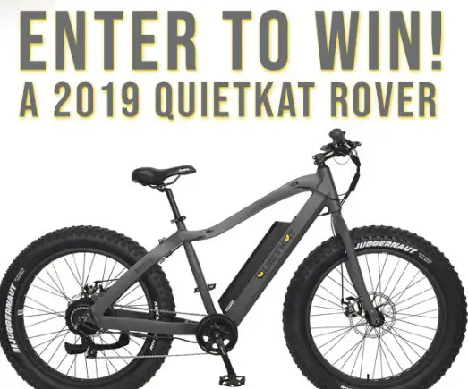 Prize: 2019 QuietKat Rover 750 Electric Mountain Bike valued at $2,199.00. This fat tire bike is equipped with a 750w hub motor, single-speed gearing, and a rigid front fork.
