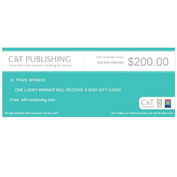 Score a $200.00 C&T Publishing gift card. CTPub.com is your one stop shop for all of your sewing, quilting, and crafting needs. They have everything from project books to fabric and notions.