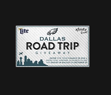 Grand Prize is 2 tickets to the Eagles vs Cowboys game at AT&T Stadium, on 10/20/2019, 2 night stay for 2 at the Hyatt Place Dallas/Arlington, (check in on 10/19/2019 and check out on 10/21/2019 + more, worth $1,500.00. Are you feeling lucky?! Enter now and you might be packing your bags pretty soon to catch a great game!