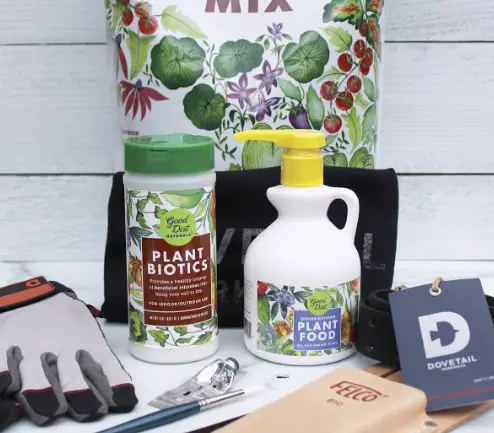 Say that 3 times fast! Enter to win a $150.00 Dovetail Workwear Gift Card, Felco pruners and holster, Good Dirt Bag of Outdoor Potting Mix, PlantBiotics and Indoor/Outdoor Plant Food, and a botanical watercolor painting by Sarah Simon of TheMintGardener.