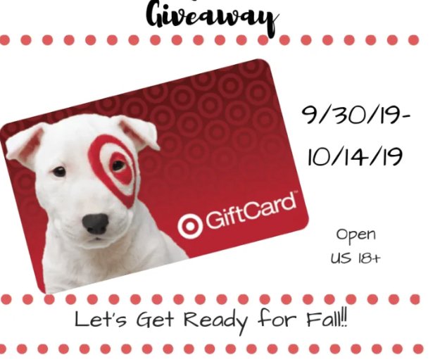 Win a $100.00 Target gift card. Giveaway begins September 30, 2019 12am &ends October 14, 2019 at 11:59pm Eastern.