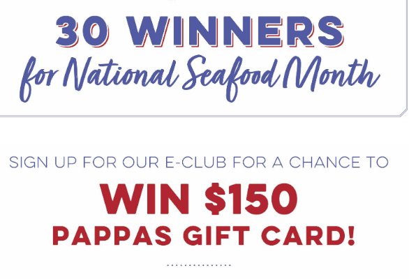 Win 1 of 30 $150.00 Pappadeaux Seafood Kitchen gift cards. Just complete the short entry form for a chance to win!