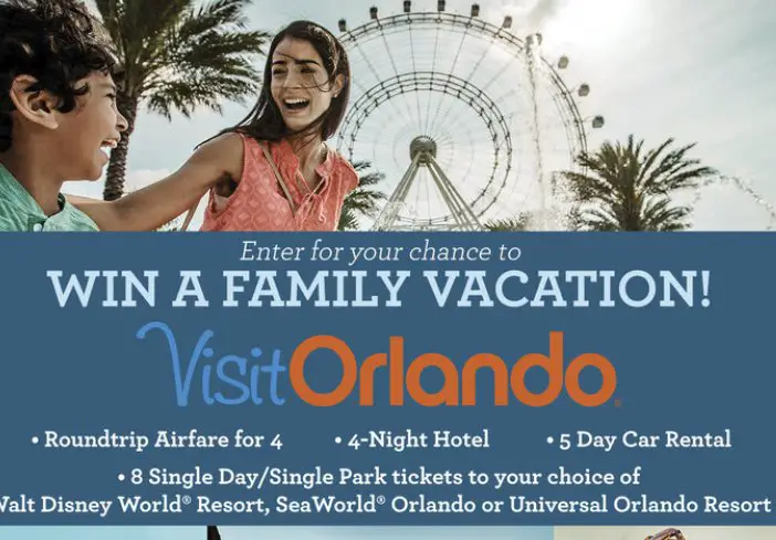 Win a $4,999.00 5 Day/4 Night trip for 4 to Orlando, including tickets to Walt Disney World, Universal Orlando or Seaworld. Submit your entry to qualify!