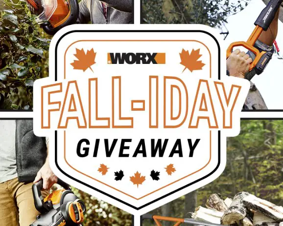Win a $570.00 Worx tool set featuring a 40V Power Share Cordless 24 Inch Hedge Trimmer (2x20V) 20V Power Share Jawsaw Cordless Chainsaw TRIVAC 12 AMP Electric 3 in 1 Blower/Mulcher/Yard Vacuum AEROCART 8 in 1 Wheelbarrow/Yard Cart/Dolly. WORX designs tools to keep your yard looking pristine all year long; but fall is the perfect time to clean up your outdoor spaces.