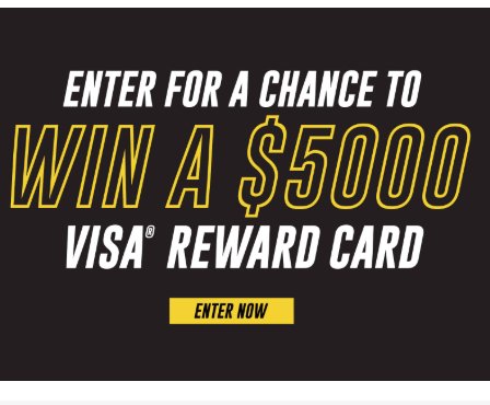 Prize consists of one $5,000.00 Visa Reward Card. Limit one Entry per person during the Sweepstakes Period.