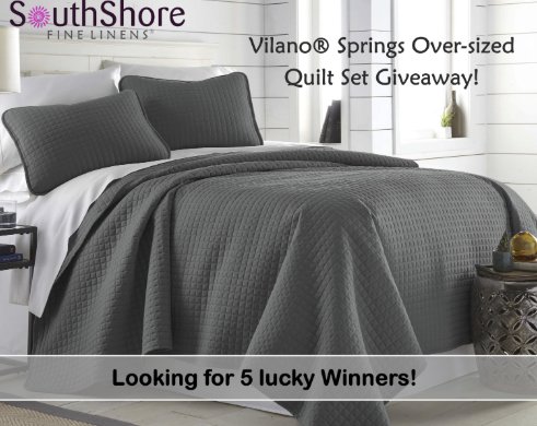 5 Winners will each receive a Vilano Springs Oversized Quilt. Sign up for newsletter to enter. Can't wait for the giveaway to end?