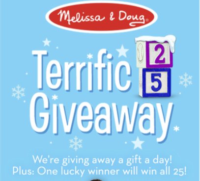 25 FIRST PRIZES: A prize from Melissa & Doug's “2019 Terrific 25 Giveaway Prize List”. ARV: $16.99 - $229.98.Entry Form