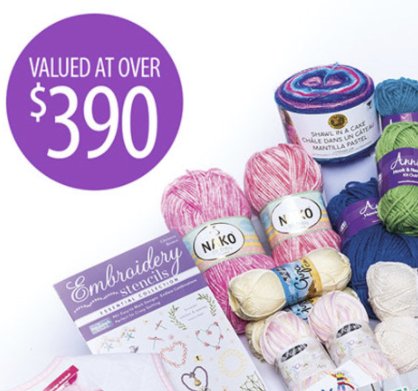 Enter to win 42 skeins of yarn with a thread collection, pattern books and more, worth $390.00 in all.