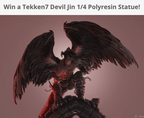 PRIZE: A Tekken 7 Devil Jin 1/4 polyresin statue. Complete all of the actions on the entry form to increase your chance to win the new Tekken 7 Devil Jin 1/4 Statue!