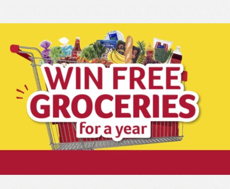 “Groceries for a year,” awarded as fifty-two (52) $100 gift cards (ARV: $5200 each)Entry Form
