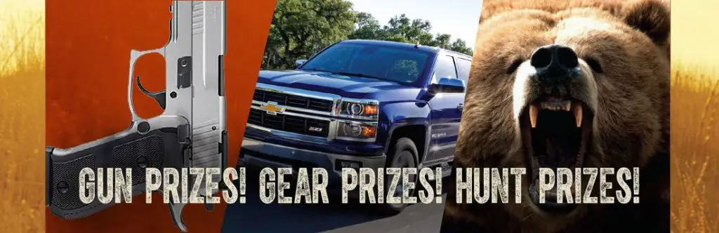 Win your choice of gun collection, Chevy Silverado truck, or brown bear and moose hunt worth $35,202.00! Additional prizes available!