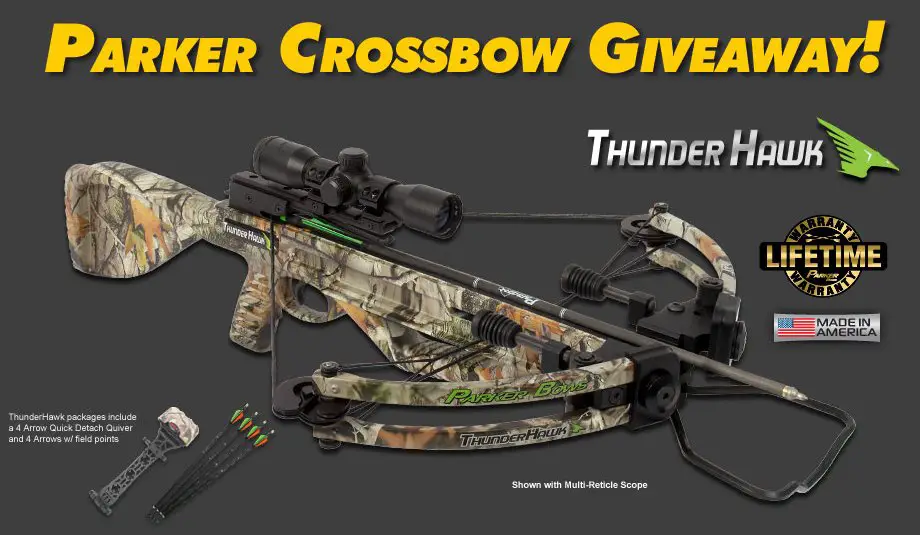 Win a Parker ThunderHawk Crossbow worth $599.95! One winner per month, enter for your chance and complete the form right now!