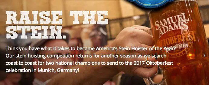 Win a $4,600 trip for two to Las Vegas to watch the National Samuel Adams Steinhoisting Championship.