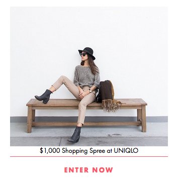 Complete the popup form for a chance to win a $1,000 UNIQLO USA shopping spree!