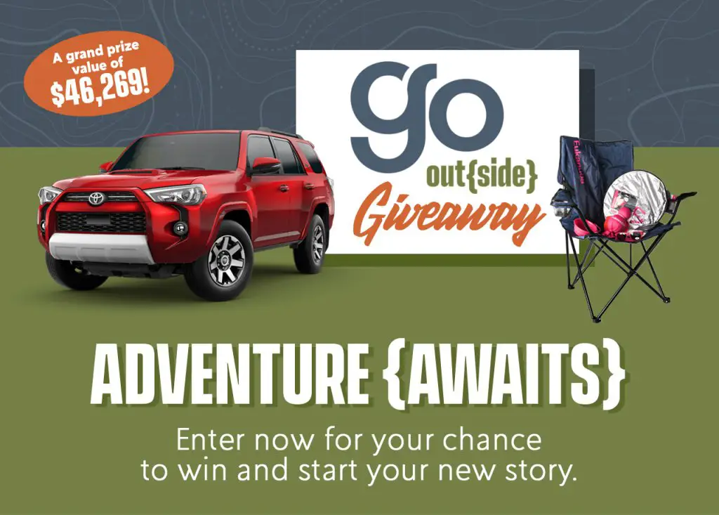 BassMaster's Go Out{side} Giveaway is currently on and offering you an opportunity to win a 2021 Toyota 4Runner truck