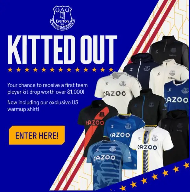Enter the Everton Kitted Out Giveaway and you may be the lucky winner of Everton merchandise including first team kit and US warmup shirt.