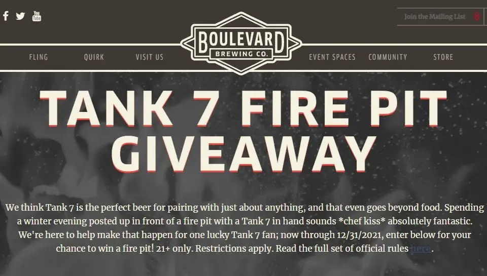 Win A $195 Tank 7 Fire Pit In The Boulevard Brewing Tank 7 Fire Pit Sweepstakes - Boulevard Brewing Company