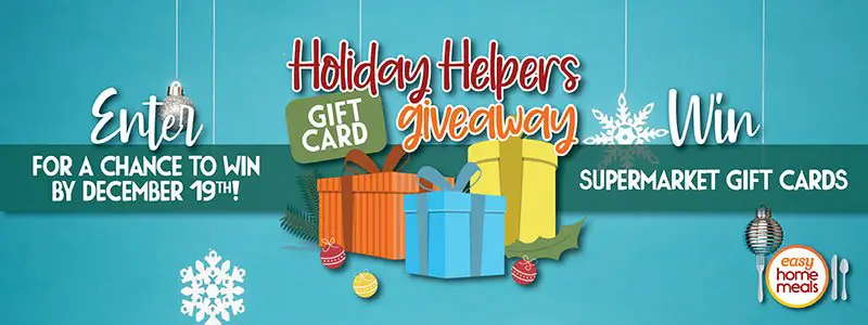 The Easy Home Meals Holiday Helpers Gift Card Giveaway is giving you a chance to win a $250 Grocery Gift Card of your choice.