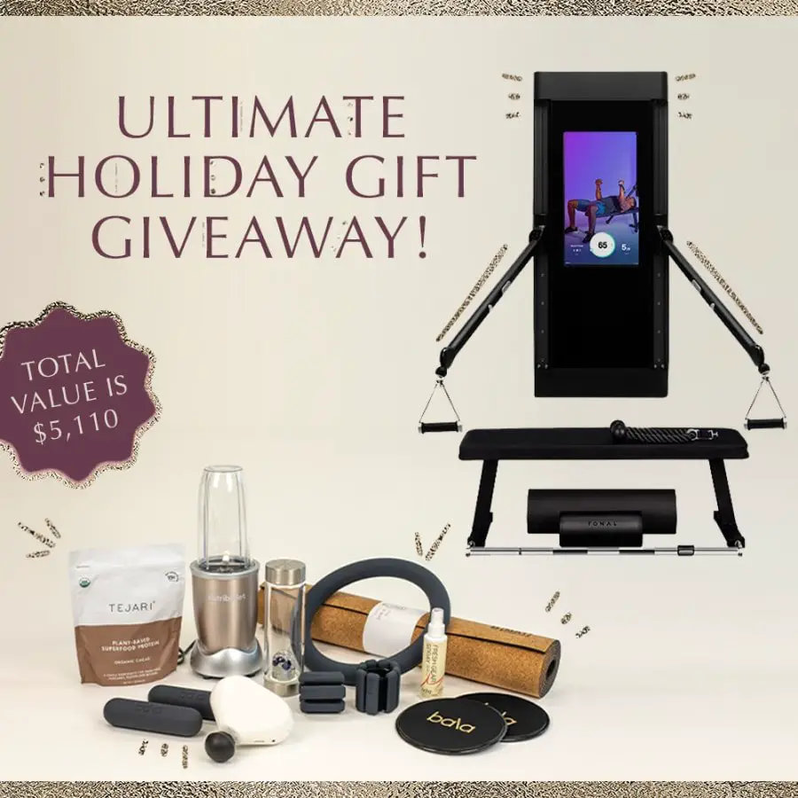 A $5100 Fitness Prize Package including a Tonal Fitness Machine, Theragun Mini, yoga mat, diffel bag, gift cards and lots moreEntry Form