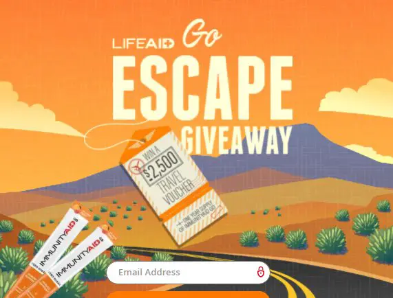 The LifeAid Go Escape Giveaway is offering you a chance to win $2500 travel voucher and One-Year supply of ImmunityAid drinks.